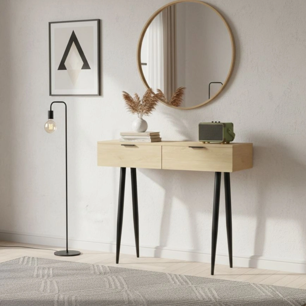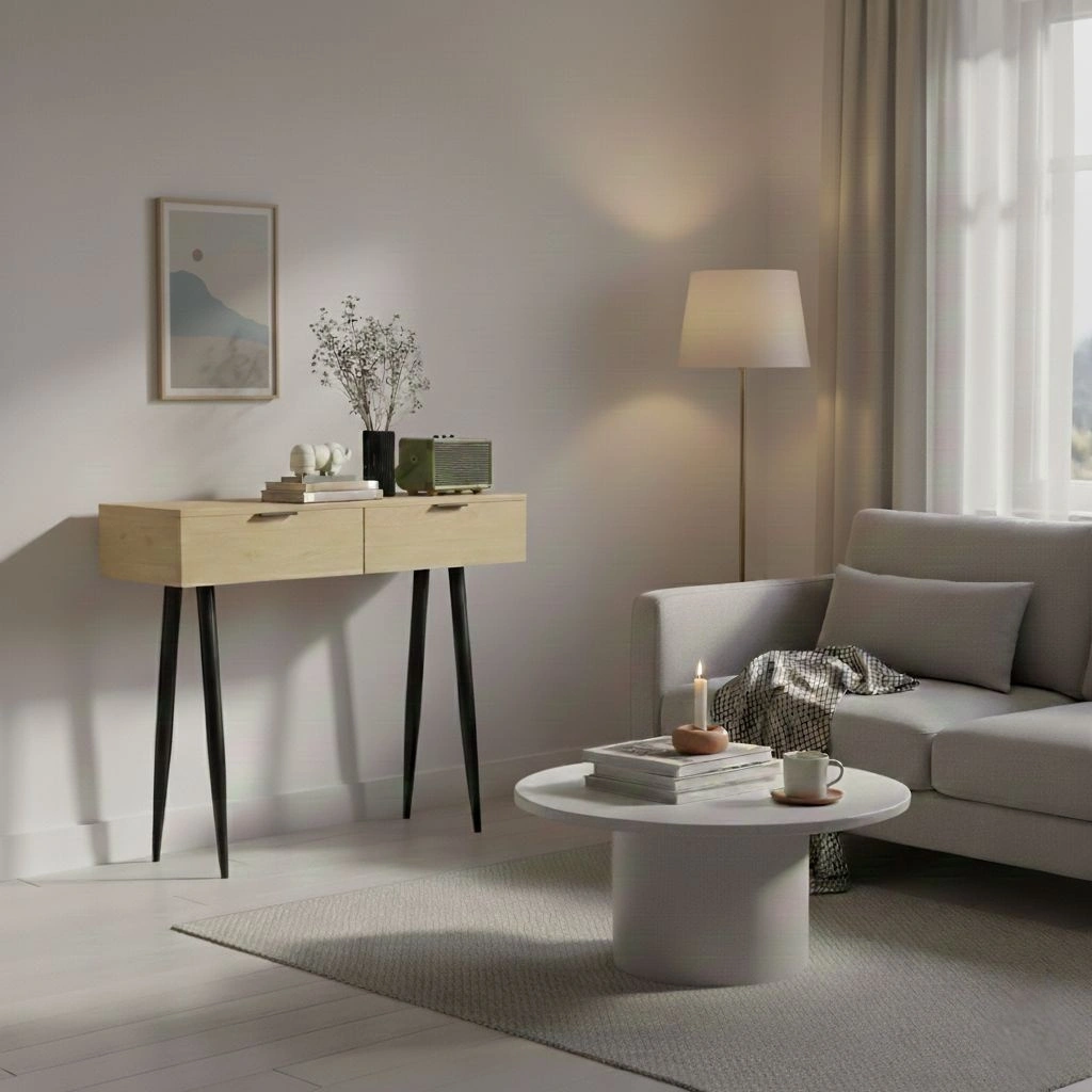Detta moderna konsolbord i nordisk stil är ett elegant och praktiskt tillskott till ditt hem