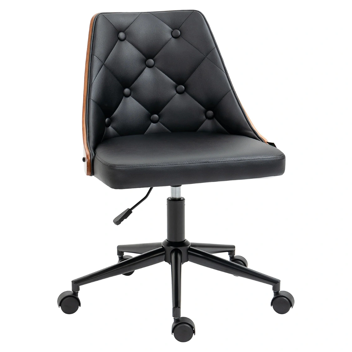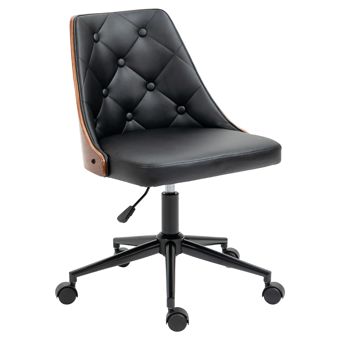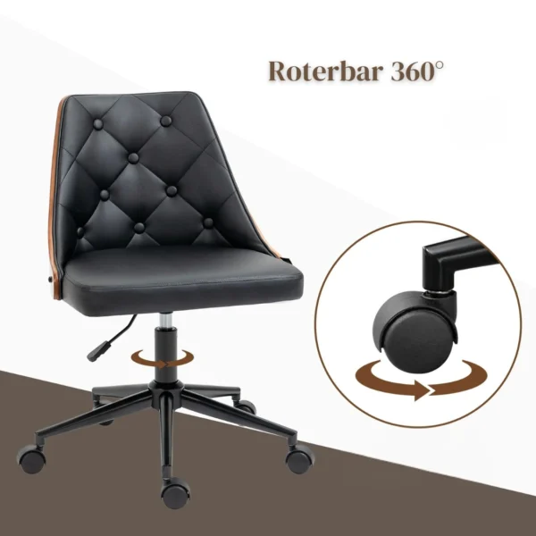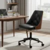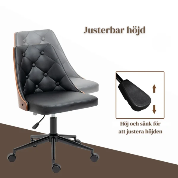 Ergonomisk Skrivbordsstol i Retrodesign - Trä och Läder – Svart och ValnötsbrunErgonomisk Skrivbordsstol i Retrodesign – Trä och Läder – Svart och Valnötsbrun