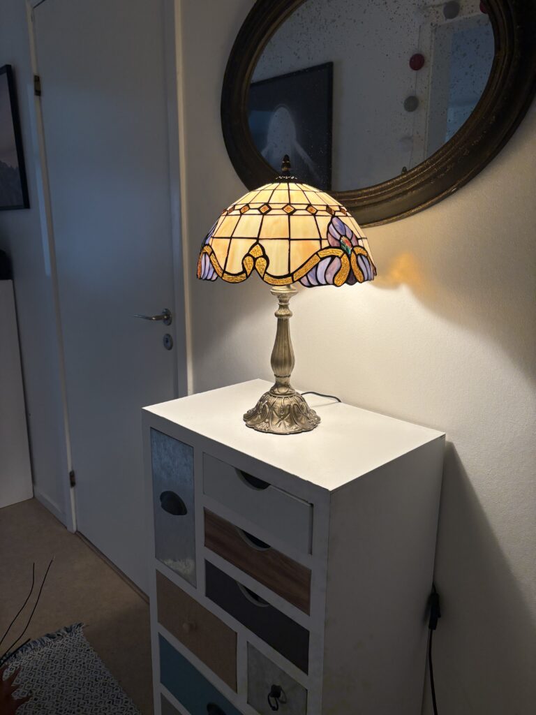 Upptäck vår vackra bordslampa – en fantastisk kombination av handgjort färgat glas och enastående hantverk