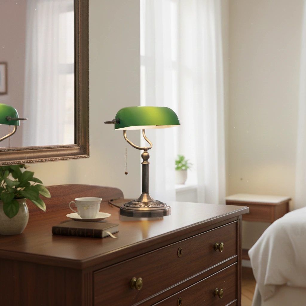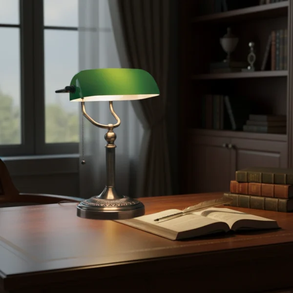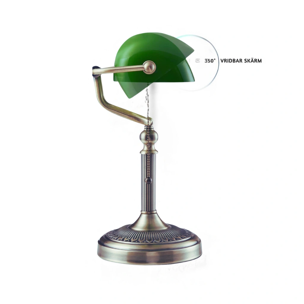Klassisk Retro Bankirlampa med Dragströmbrytare – Grön Skärm