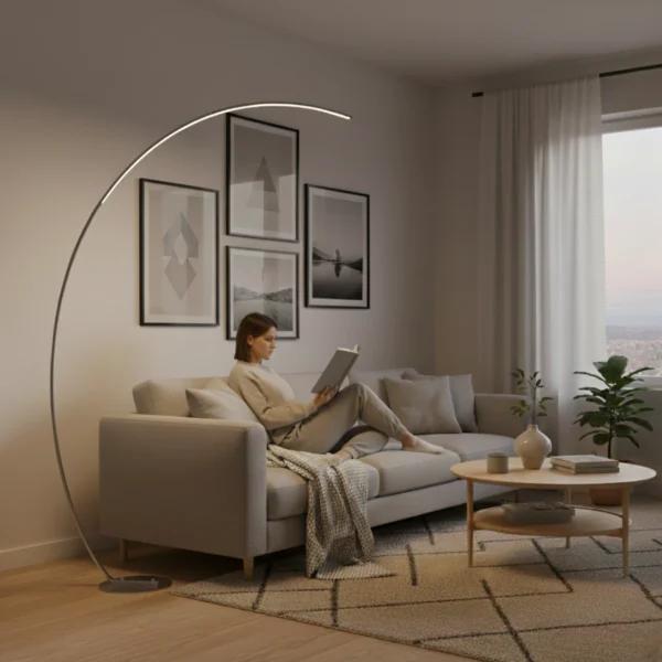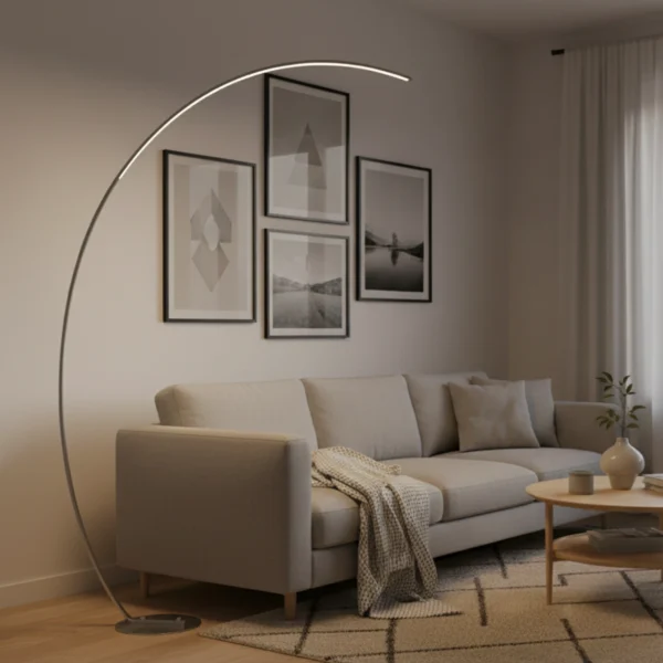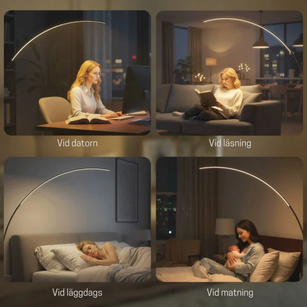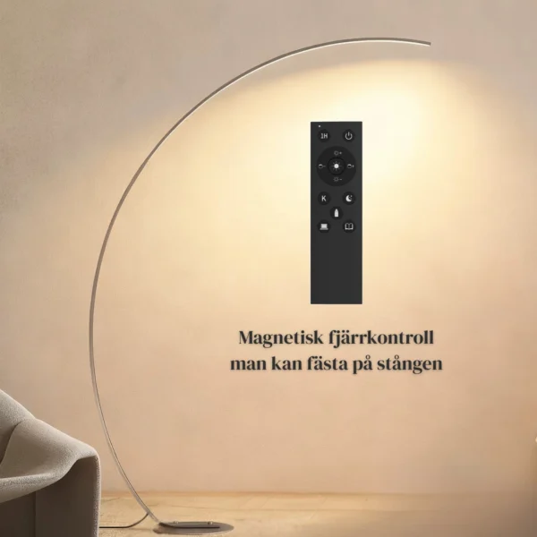Brist på tillräckligt ljus kan försämra både komforten och stilen i ditt hem. Denna golvlampa med sin 172 cm båge och eleganta design, lyser upp soffor och hörn med kraftfullt och justerbart ljus. Tack vare den magnetiska fjärrkontrollen har du alltid kontrollen nära till hands för att justera ljusstyrka, färg och lägen. En praktisk och modern lösning som gör belysningen både bekväm och estetisk.
