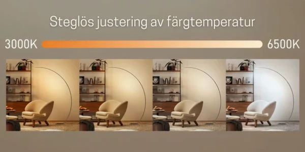 - Golvlampan erbjuder steglös dimning och justerbar färgtemperatur från 3000K till 6500K