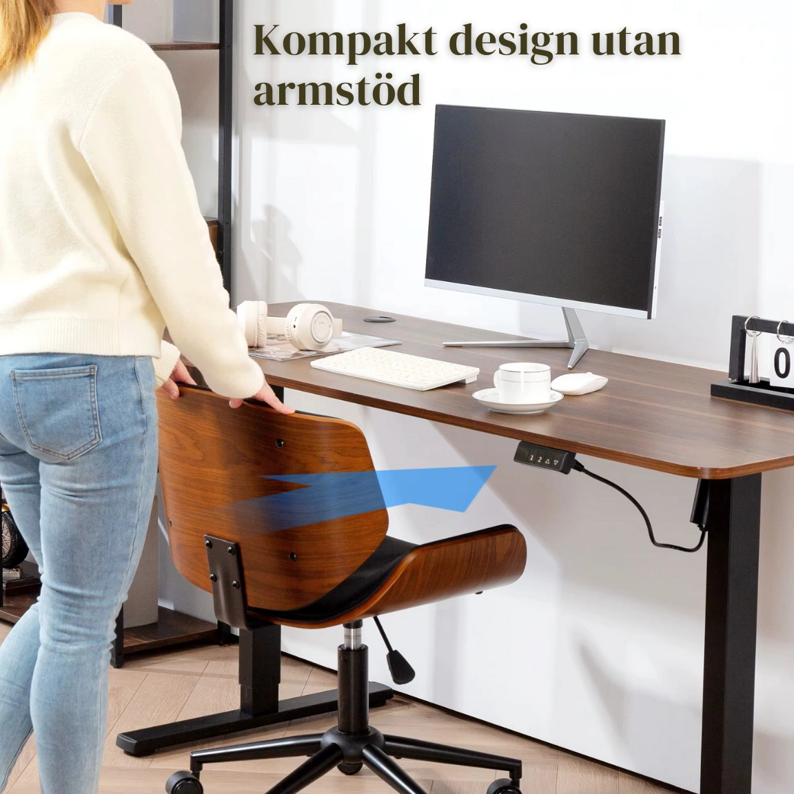 • Den armlösa designen passar till alla skrivbord – även de smalaste.