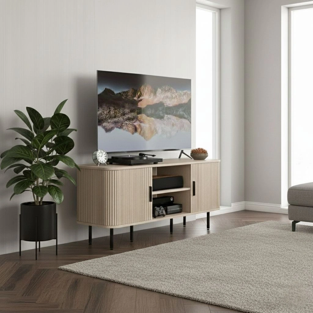 Upptäck charmen med vårt retro TV-bänk som kombinerar en modern och funktionell stil