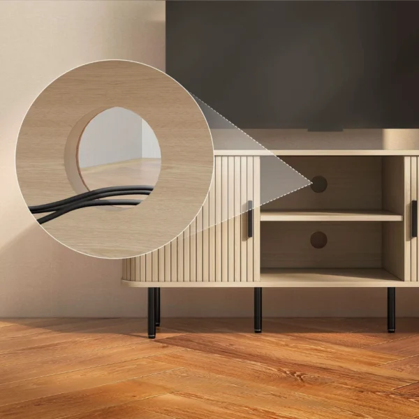 • Den laminerade ytan gör TV-bänken slitstark och lätt att rengöra.