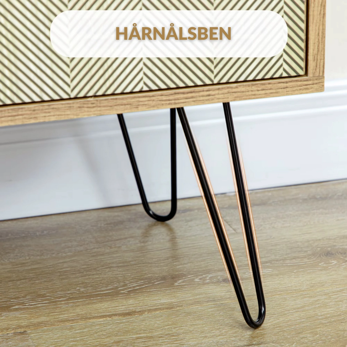 • Stilren Stabilitet: Eleganta hårnålsben i svart metall som ger en luftig känsla och hög stabilitet.