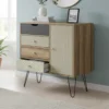 Retroinspirerad Byrå med Dekorativa Lådor och Skåp – Trä med Svarta Metallben