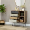 1 recension av Retroinspirerad Byrå med Dekorativa Lådor och Skåp – Trä med Svarta Metallben