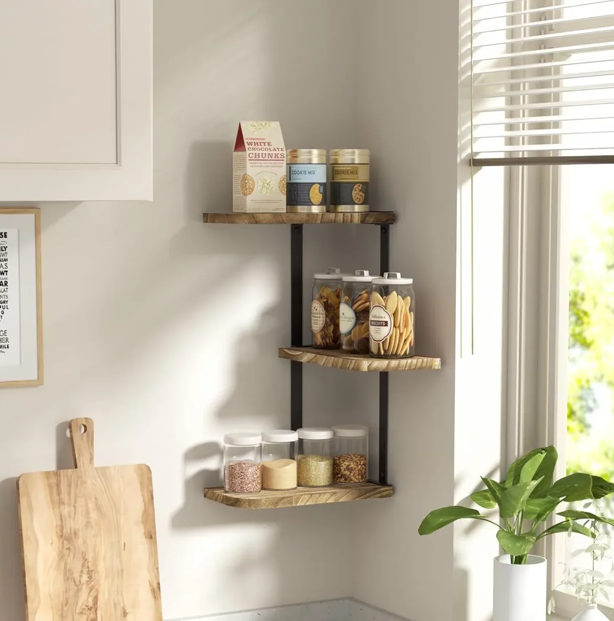 Säg farväl till tråkiga, tomma väggar! Denna hörnvägghylla erbjuder förvaringsutrymme för olika föremål med sina tre hyllor, och utnyttjar samtidigt hörnutrymmet på bästa sätt.
