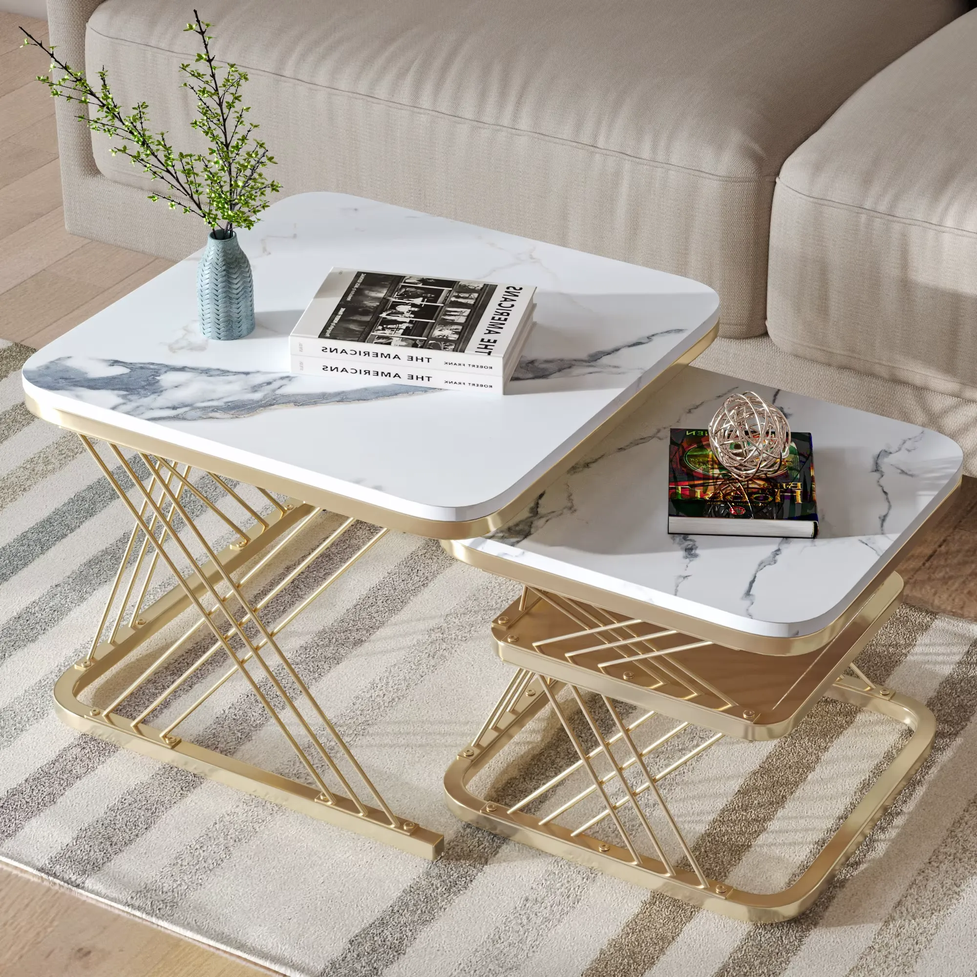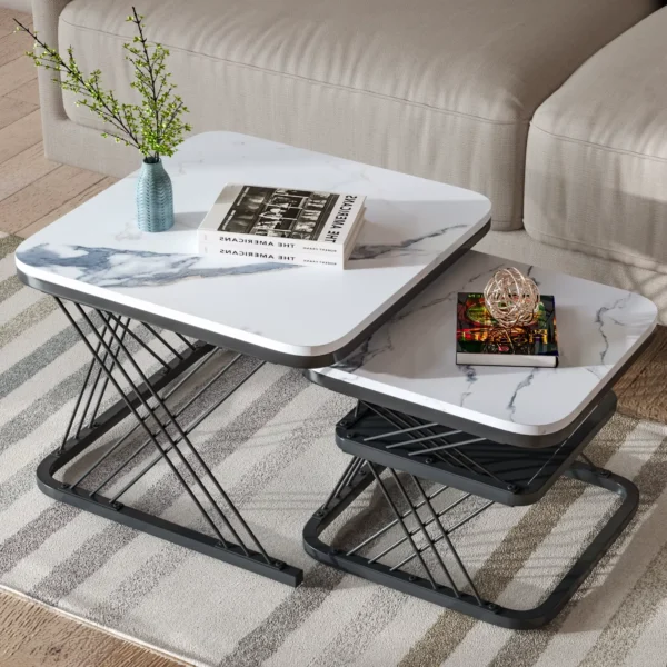 Intelligent och unik design: Detta set består av två moderna, fyrkantiga soffbord som ger optimal flexibilitet. Du kan gruppera dem eller använda dem separat. Perfekt för vardagsrum, sovrum, balkonger och små utrymmen.