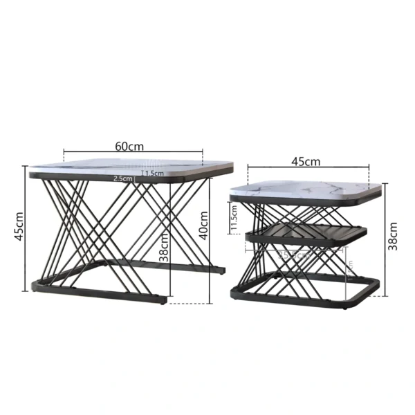 Mångsidigt soffbord: Med måtten 60 x 60 x 45 cm och 45 x 45 x 38 cm är detta soffbord idealiskt för små utrymmen. Det kan användas som sidobord, nattduksbord eller soffbord och gör din yta mer praktisk och organiserad.
