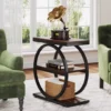 - Elegant sidobord med matt svart metallram och rustik brun bordsskiva