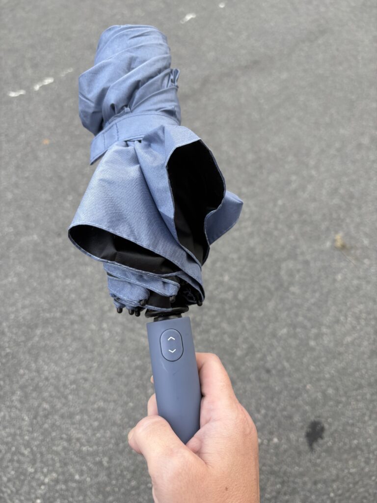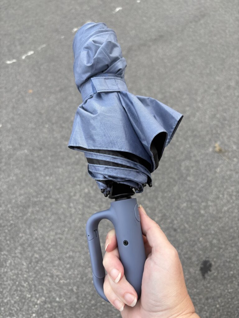 Älskar mitt paraply! Vindtåligt, smidigt och snabbt att öppna. Smälls upp på en microsekund! Dessutom är handtaget en dröm att hålla i, det är så lent.