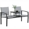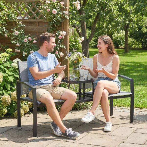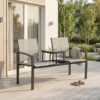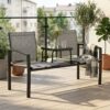 Den smarta designen kombinerar två bekväma sittplatser med ett praktiskt tvåvåningsbord i mitten – perfekt för kaffe, böcker eller andra småsaker inom räckhåll. En idealisk lösning för avkopplande stunder i trädgården, på altanen eller balkongen.