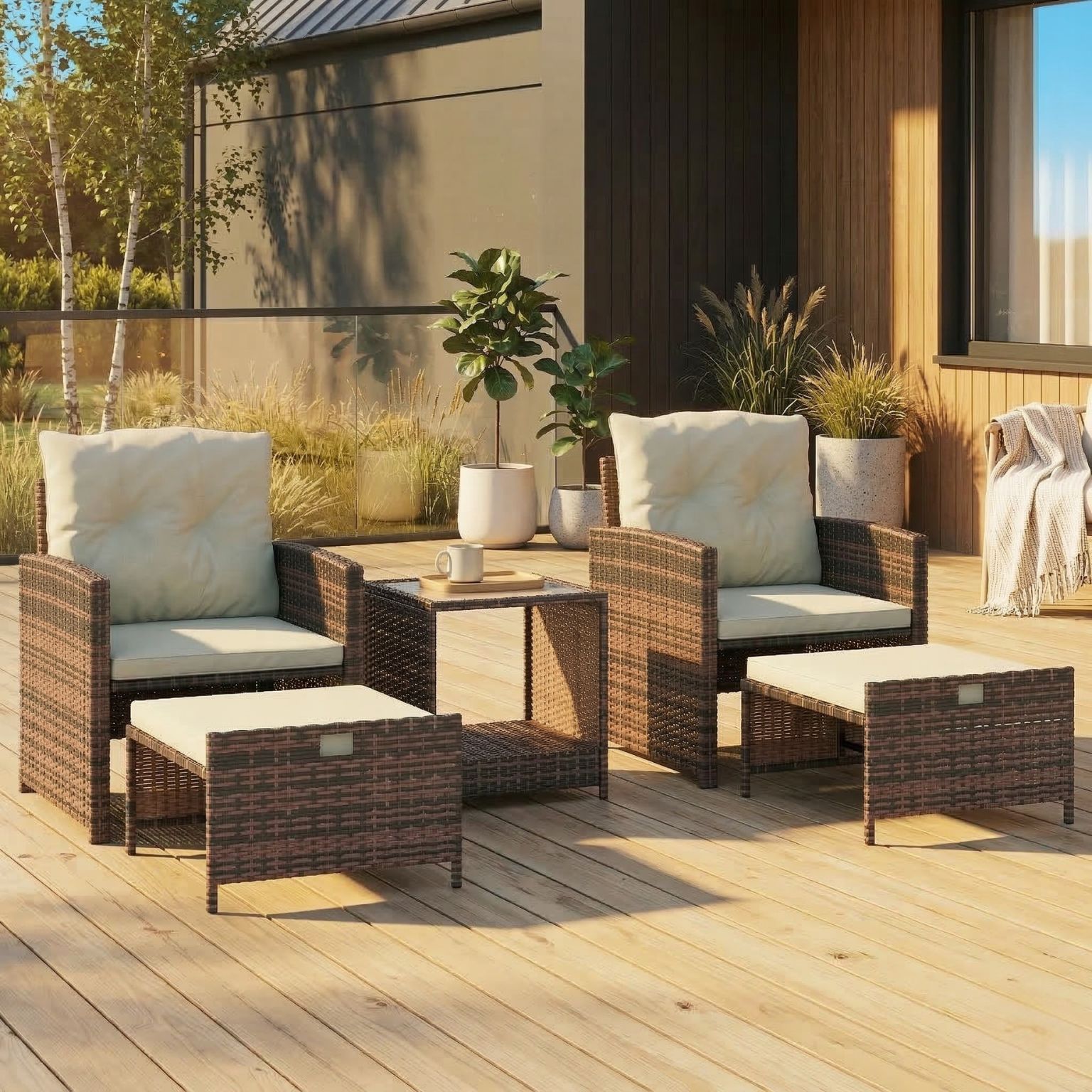 - 5-delat trädgårdsset med två fåtöljer, två fotpallar och ett bord
