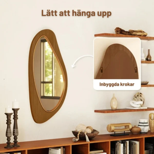 Elegant Asymmetrisk Väggspegel med Träram - 91,5x 45 cm Elegant Asymmetrisk Väggspegel med Träram - 91,5x 45 cm