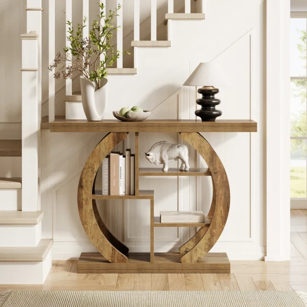 • Smart förvaring i flera nivåer: Med fyra hyllplan erbjuder bordet generöst med förvaringsyta för dekoration, böcker och vardagsföremål – perfekt för att hålla hemmet organiserat utan att ta onödig plats.
