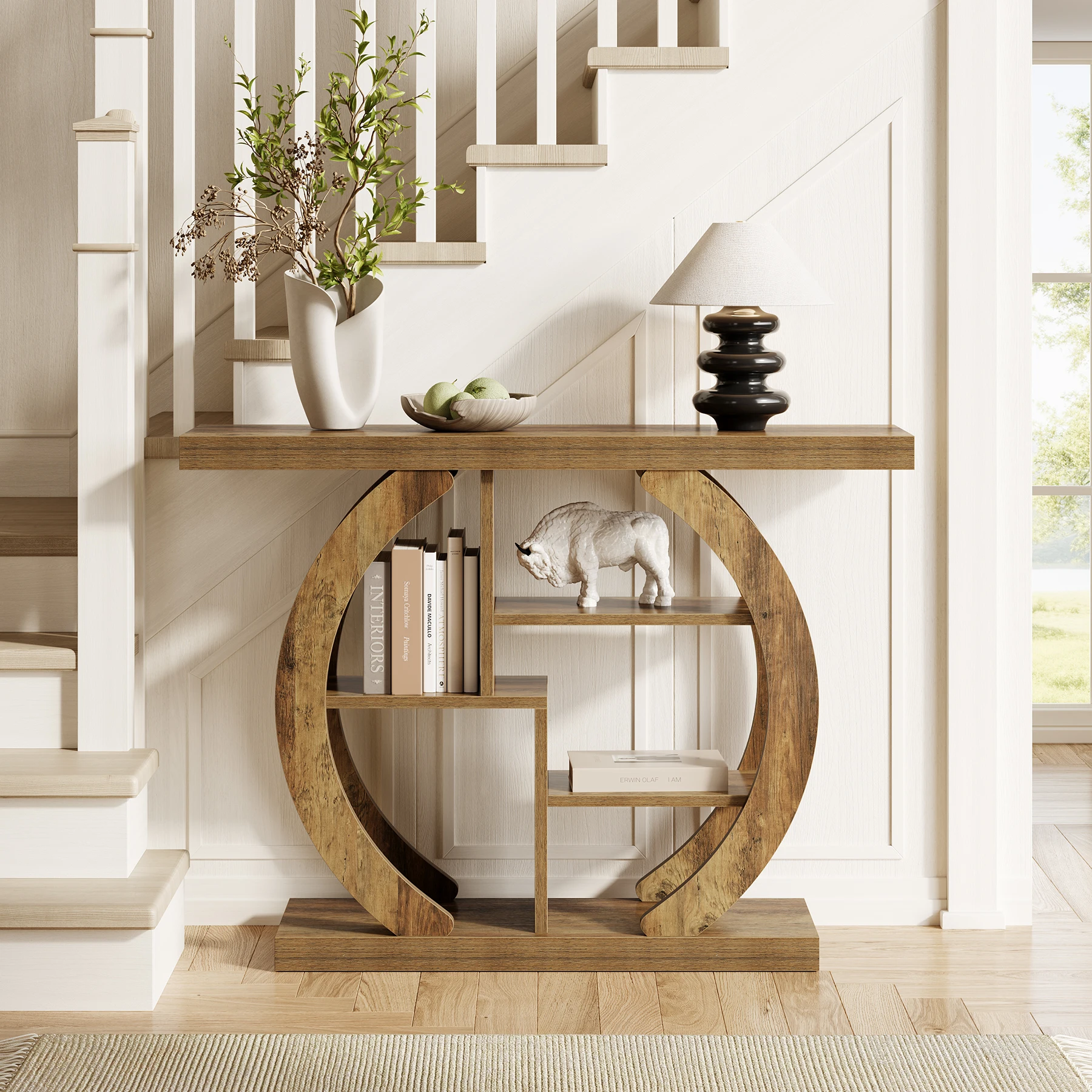 • Tidlös och mångsidig design: Det 108 cm långa konsolbordet har en ljusbrun ekfinish i klassisk rustik stil som passar lika bra i vardagsrum, hall som i smalare passager.