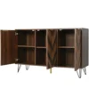 - Generös förvaring: Sideboardet har tre dörrar som öppnas till rymliga förvaringsfack med hyllplan, vilket gör det enkelt att organisera allt från porslin och glas till böcker och vardagsföremål.
