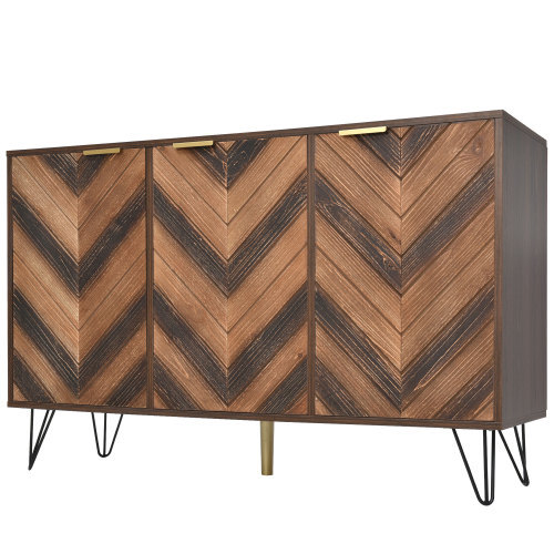 Stilrent Sideboard i Trä med Chevronmönster och 3 Dörrar – Elegant Förvaring för Hemmet