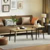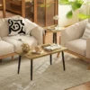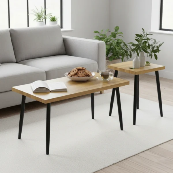 Den naturliga trälooken i kombination med de slanka, svarta benen skapar ett modernt industriellt uttryck som passar lika bra i klassiska som moderna hem. Borden är mångsidiga och kan användas som soffbord, sidobord eller dekorationsbord – perfekta för servering, prydnadsföremål eller extra avlastningsyta.