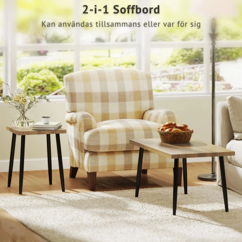- Set med ett litet och ett stort soffbord som kan användas tillsammans eller var för sig
