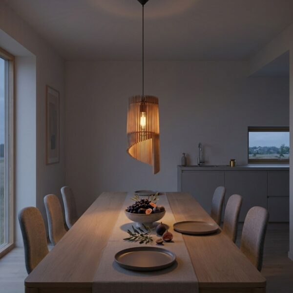 - Iögonfallande form: Den vridna, skulpturala designen gör lampan till en dekorativ detalj som fångar blicken även när den är släckt.
