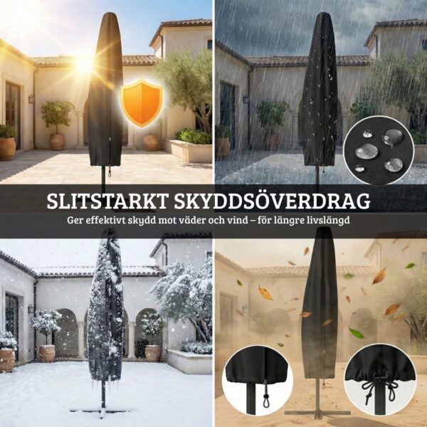 Den smarta 360° rotationsfunktionen gör det enkelt att justera skuggan efter solen, medan den stabila konstruktionen ger trygg användning hela dagen.