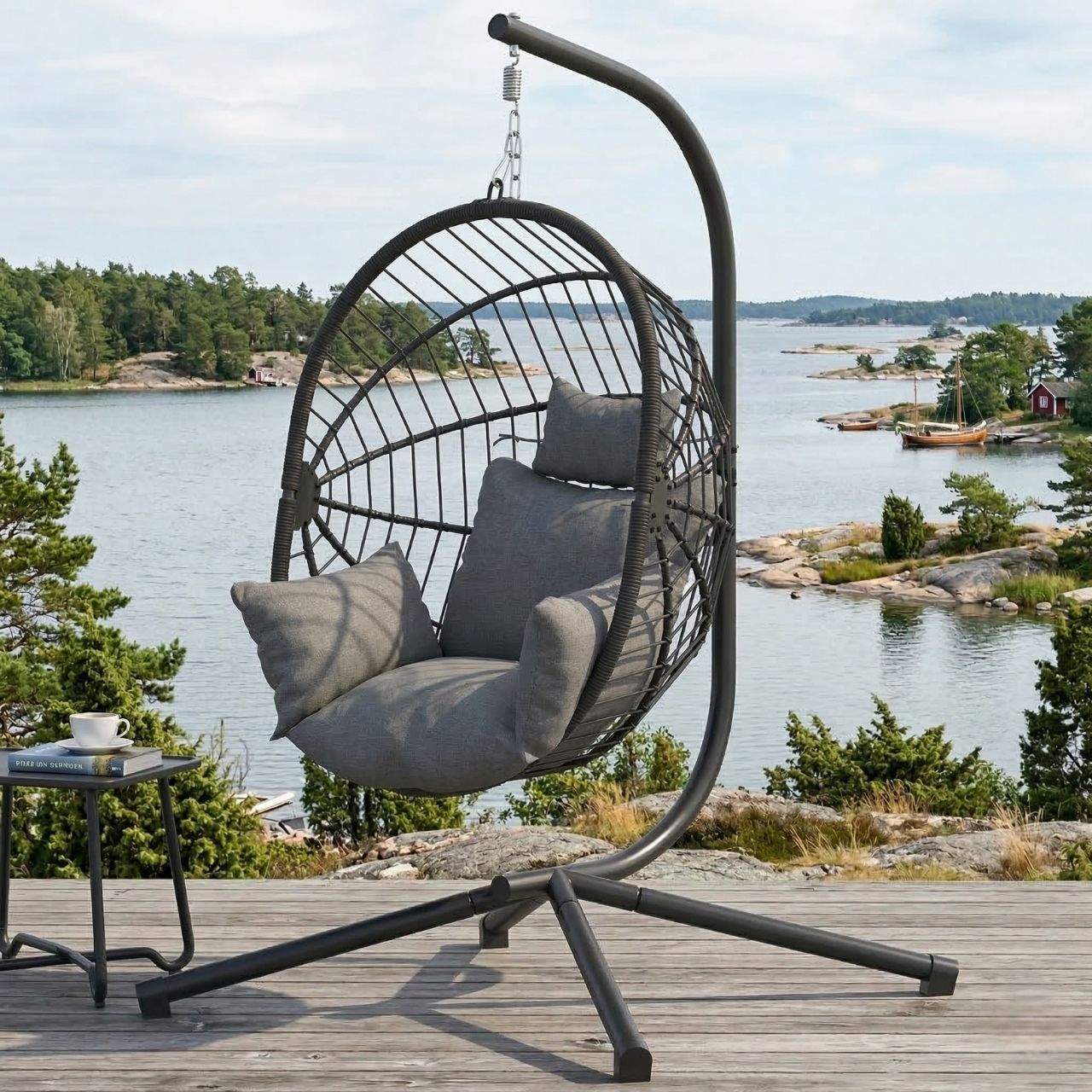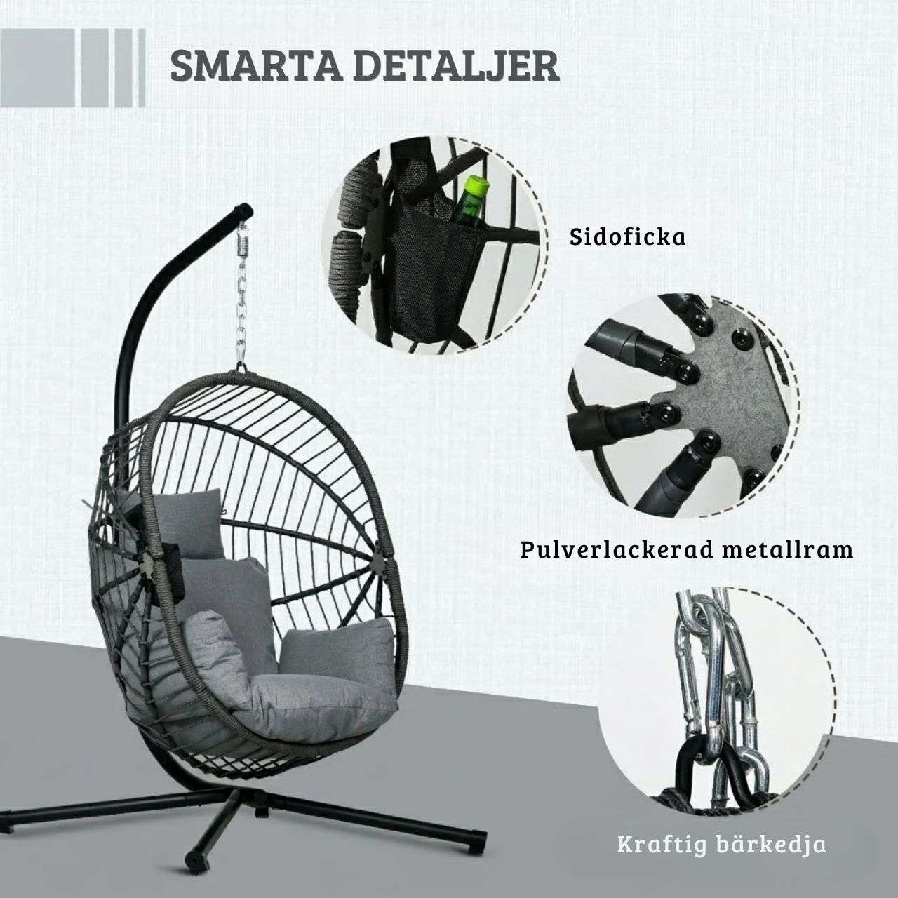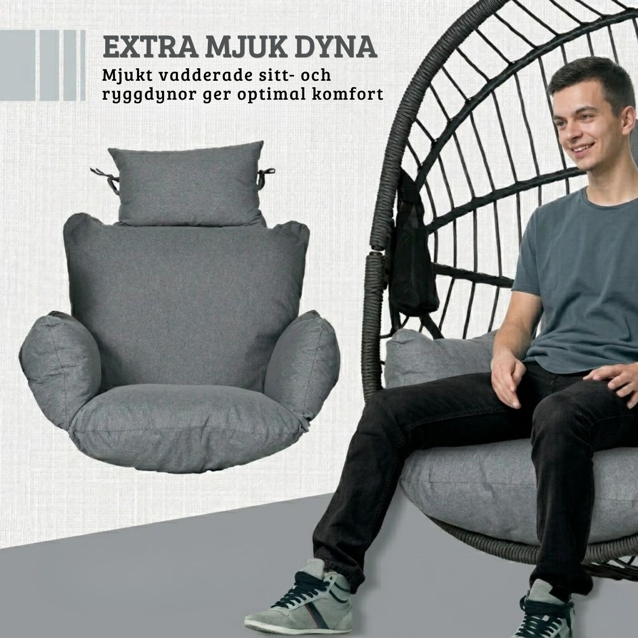 Skapa en avslappnad och stilren plats både ute och inne med denna moderna hängstol