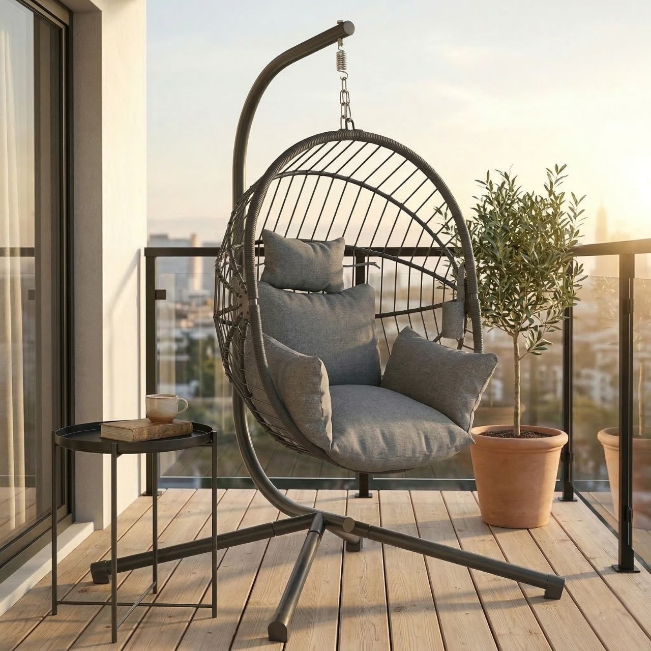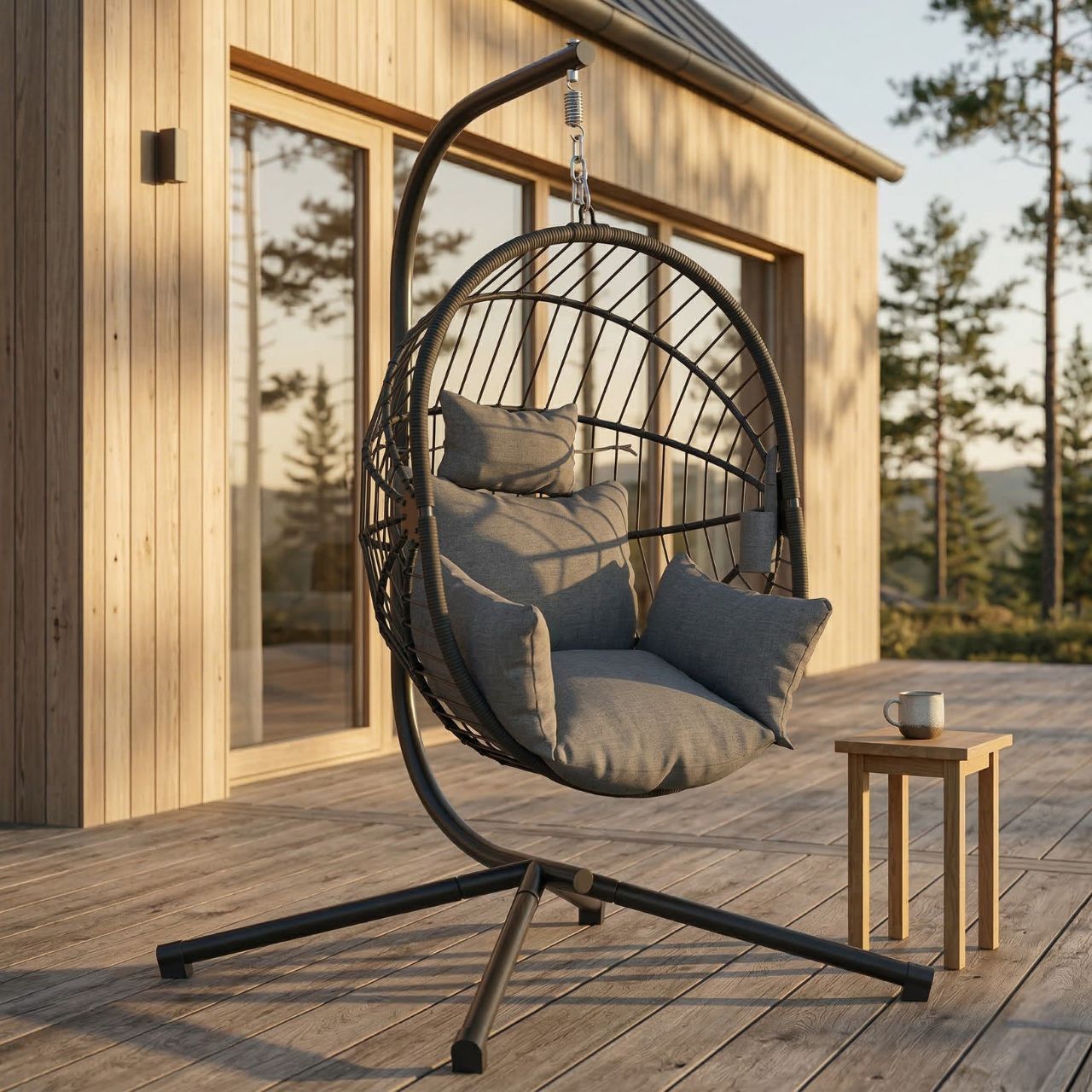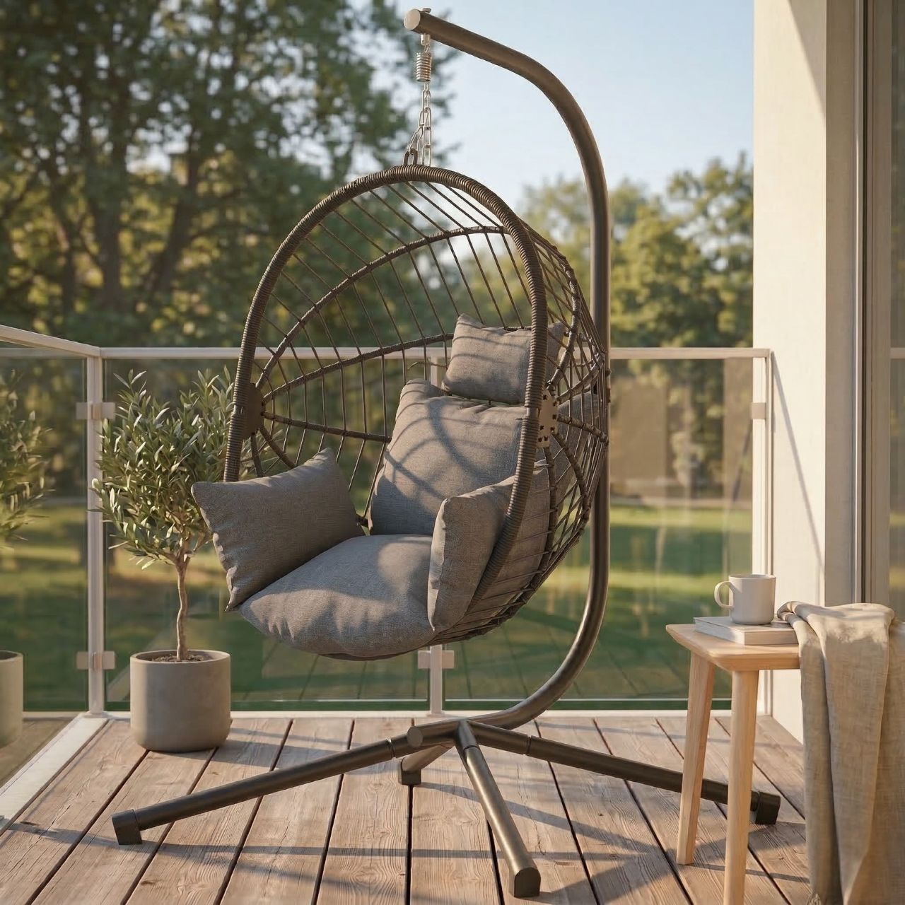 Skapa en avslappnad och stilren plats både ute och inne med denna moderna hängstol
