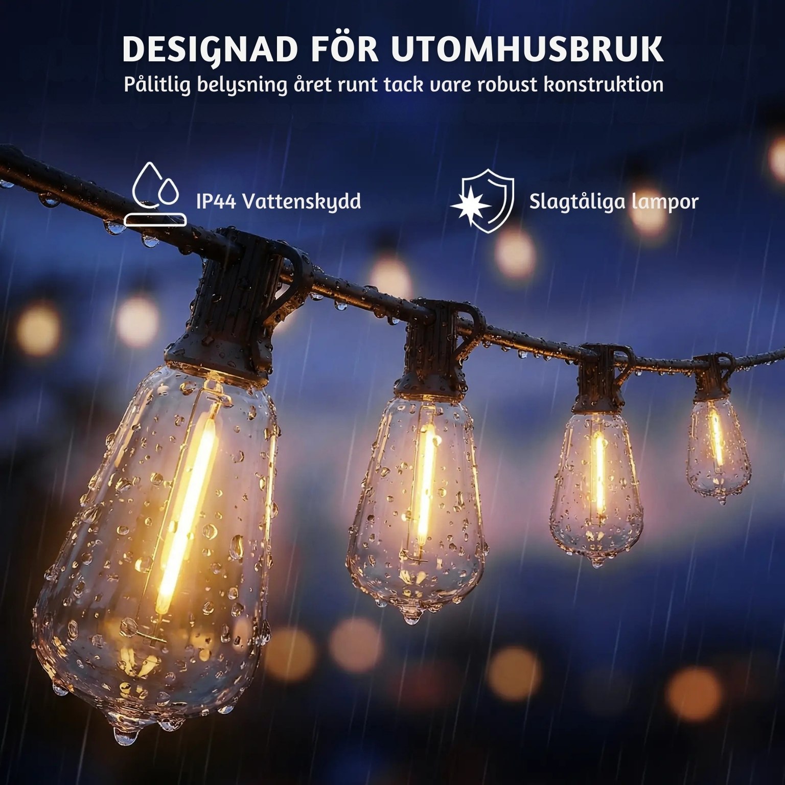- IP44-klassning – lämplig för både inomhus- och utomhusbruk