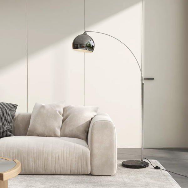 Modern Bågformad Golvlampa med Skålformad Skärm & MarmorfotModern Bågformad Golvlampa med Skålformad Skärm & Marmorfot