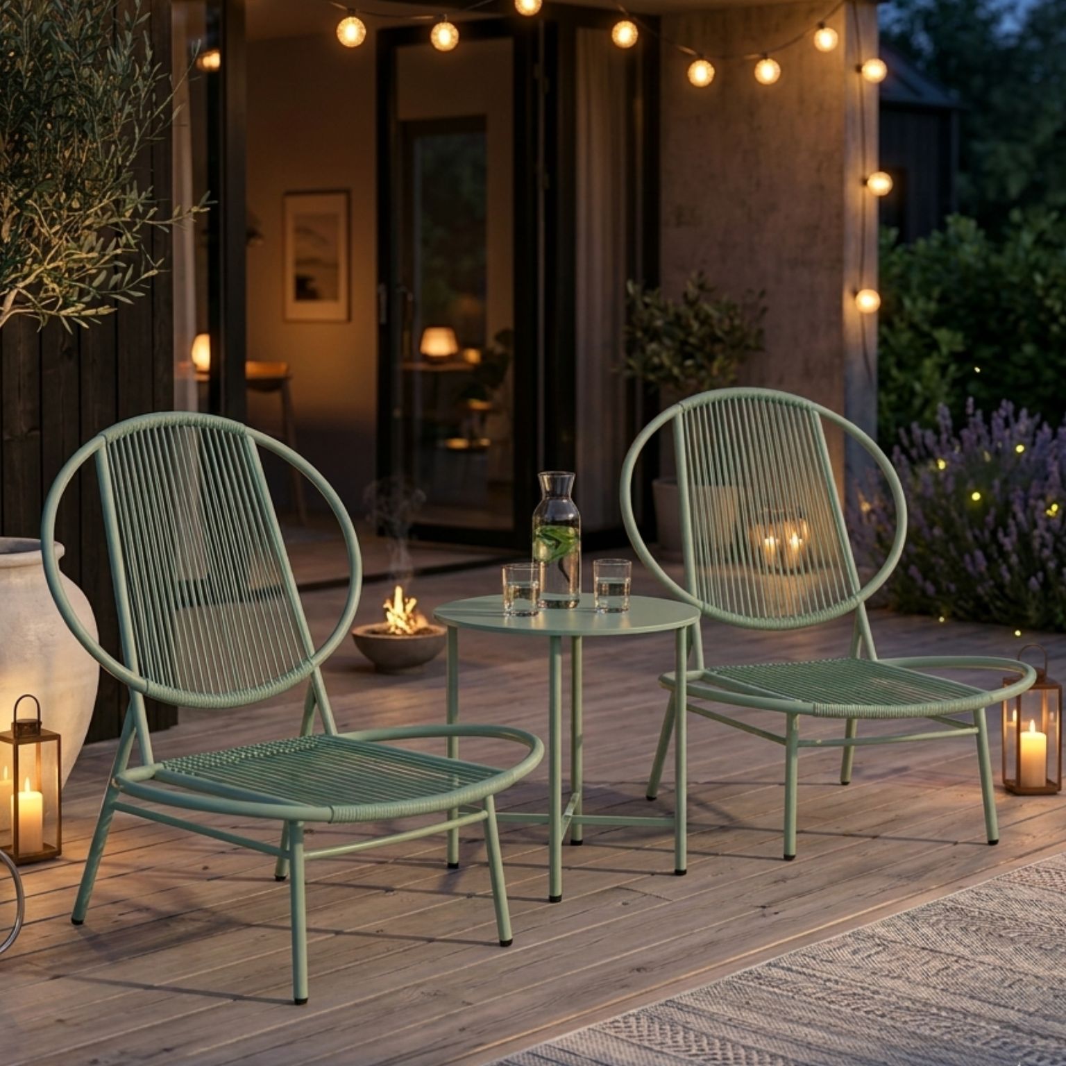 Skapa en stilfull och avkopplande plats på balkongen, uteplatsen eller i trädgården med detta eleganta bistroset i modern design