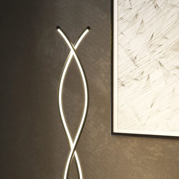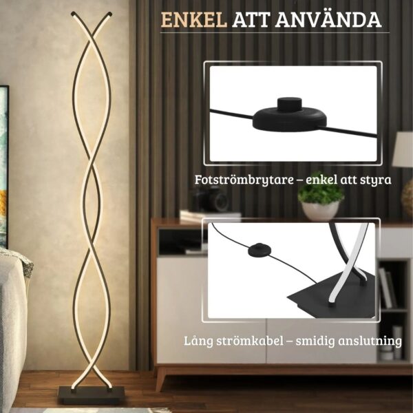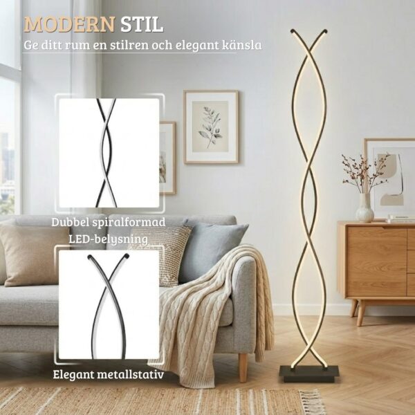 Ge ditt hem ett stilrent och exklusivt lyft med denna moderna golvlampa i unik dubbel spiral-design
