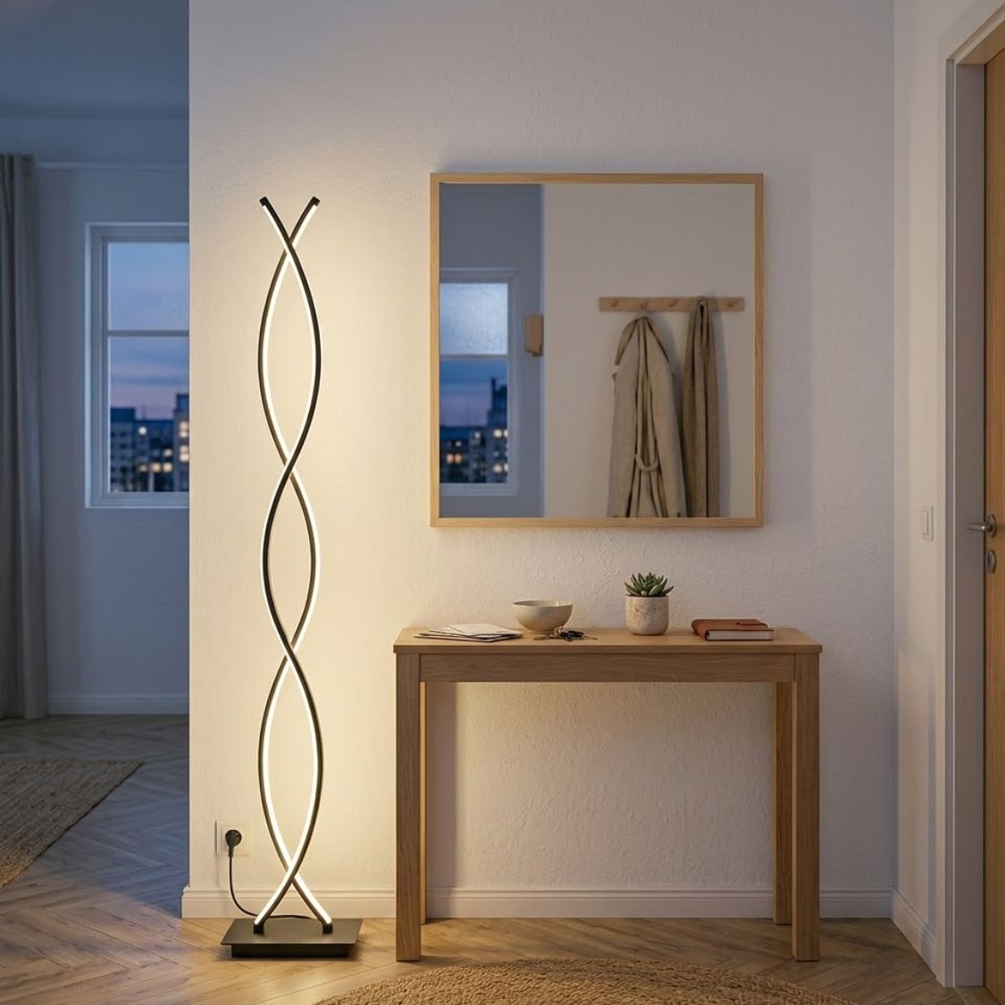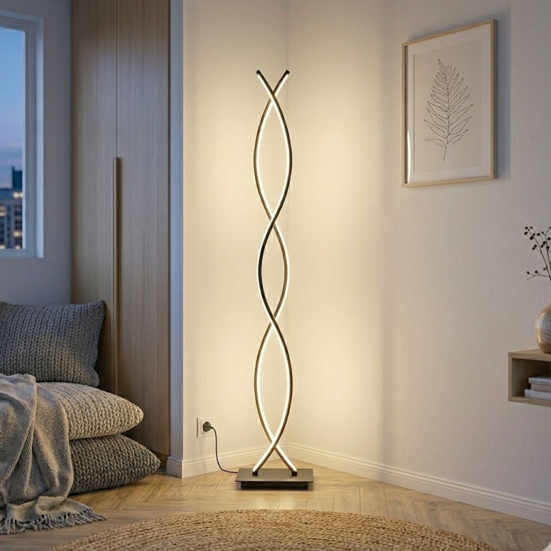 Modern Golvlampa i Dubbel Spiral – Justerbar Ljusstyrka & Elegant DesignModern Golvlampa i Dubbel Spiral – Justerbar Ljusstyrka & Elegant Design