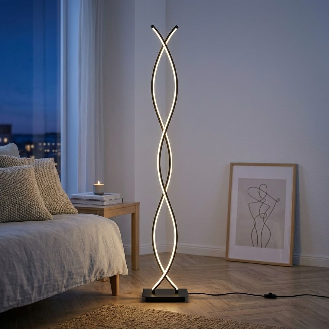 Modern Golvlampa i Dubbel Spiral – Justerbar Ljusstyrka & Elegant Design
