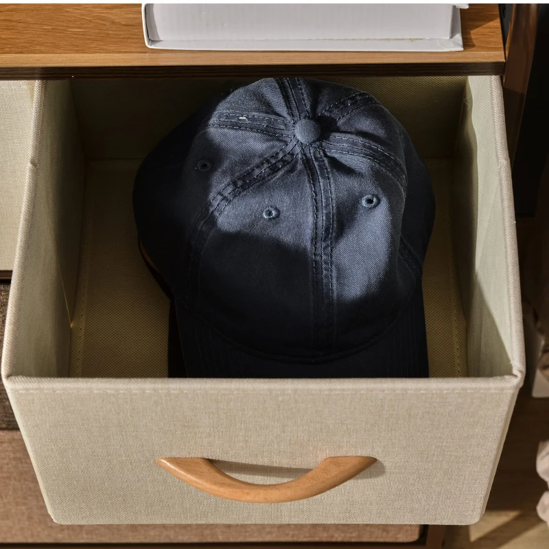 • Lådor i linnestruktur med trähandtag för ett mjukt, modernt uttryck