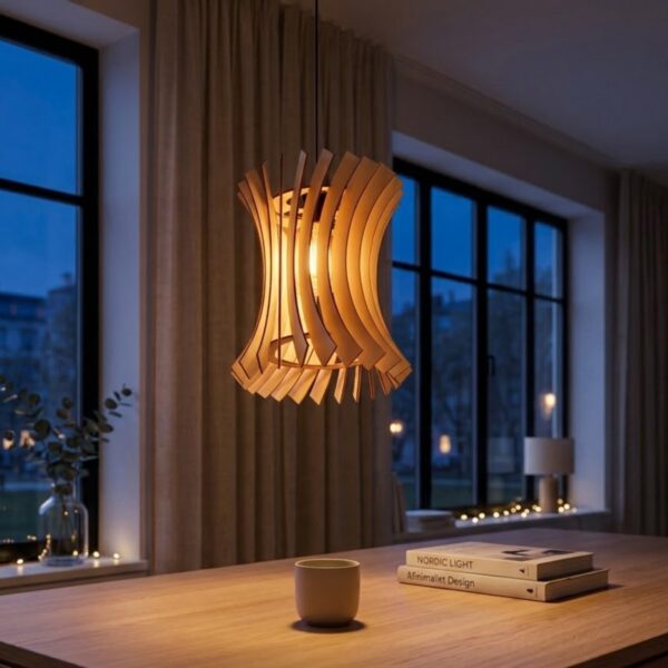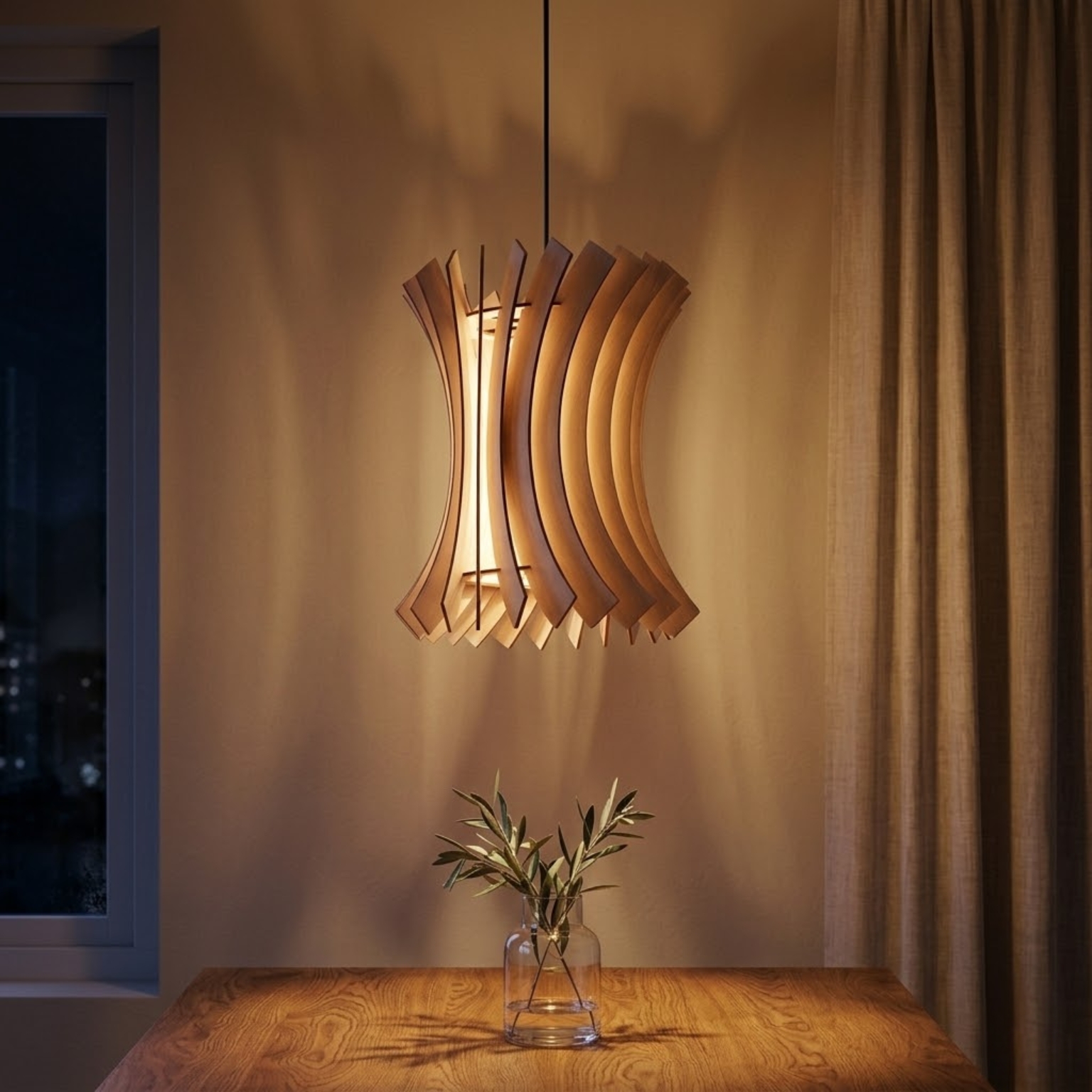 Modern Taklampa i Trä – Stilren Design med Organisk FormModern Taklampa i Trä – Stilren Design med Organisk Form