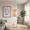 Skapa en varm och stilren atmosfär med denna unika pendellampa i naturligt trä