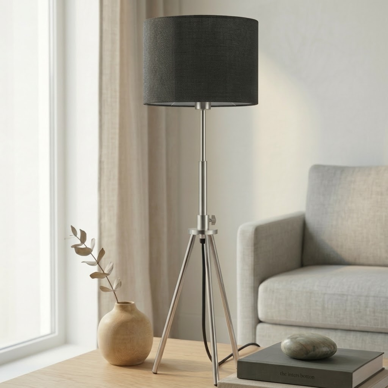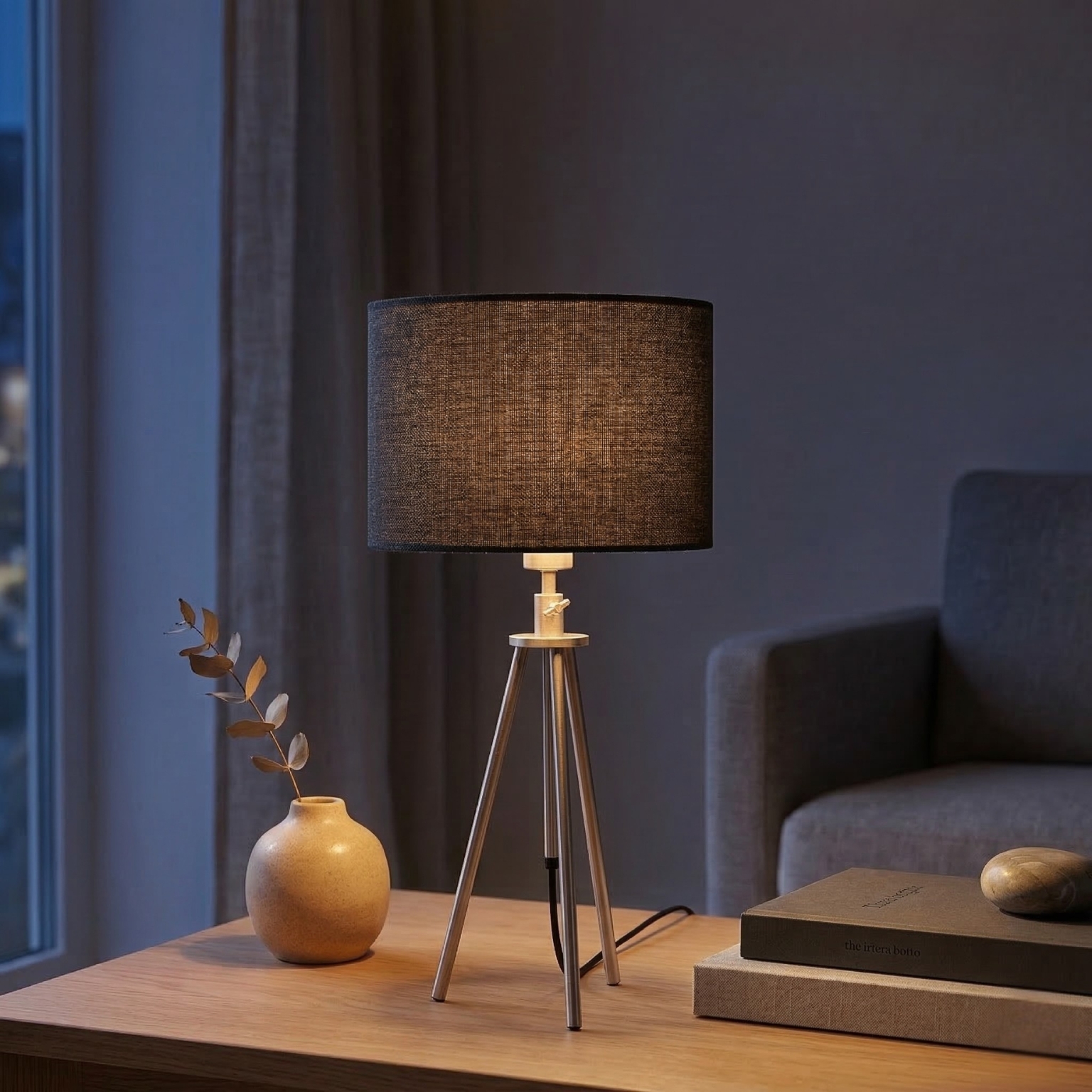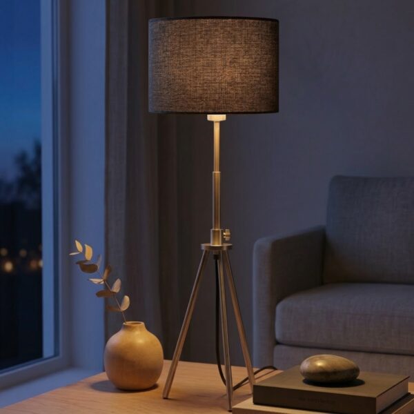 - Stabil tripod-design: Tre ben i metall ger ett stabilt och stilrent uttryck samtidigt som lampan står stadigt på bord eller sidobänk.