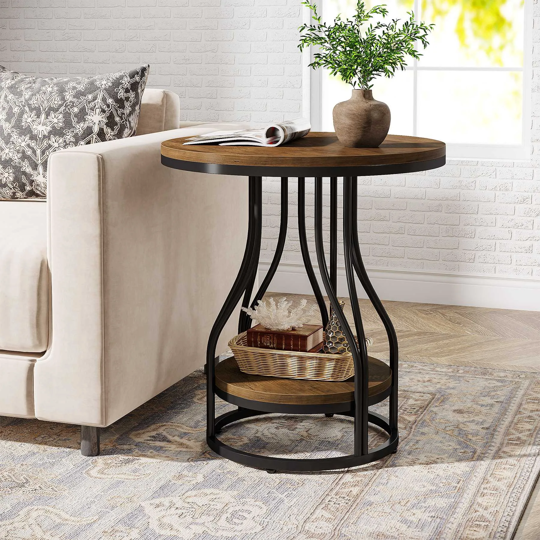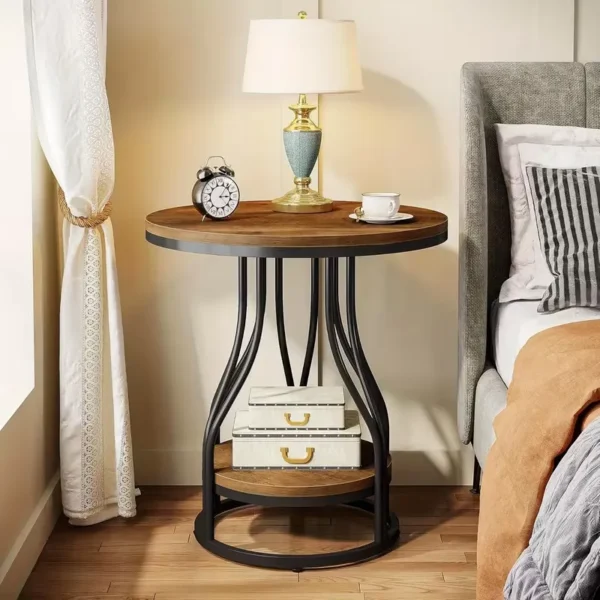 - Multifunktionell: Med en bordsskiva på 50 cm i diameter erbjuder detta sidobord gott om plats för vardagliga saker som glasögon, muggar, fjärrkontroller och böcker. Den mångsidiga designen gör att det kan användas som sidobord, nattduksbord, sängbord eller avlastningsbord.