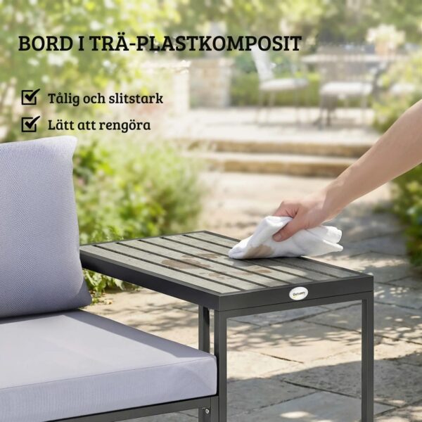 - Trälook i WPC: Armstöd och bordsskiva med naturlig träkänsla och hög slitstyrka