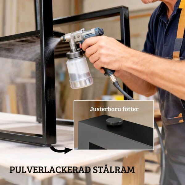 - Stabil konstruktion: Pulverlackerad stålram ger lång hållbarhet och stabilitet