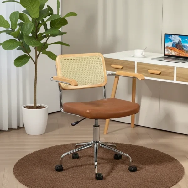 Retroinspirerad Skrivbordsstol i Rotting med Brun SitsRetroinspirerad Skrivbordsstol i Rotting med Brun Sits