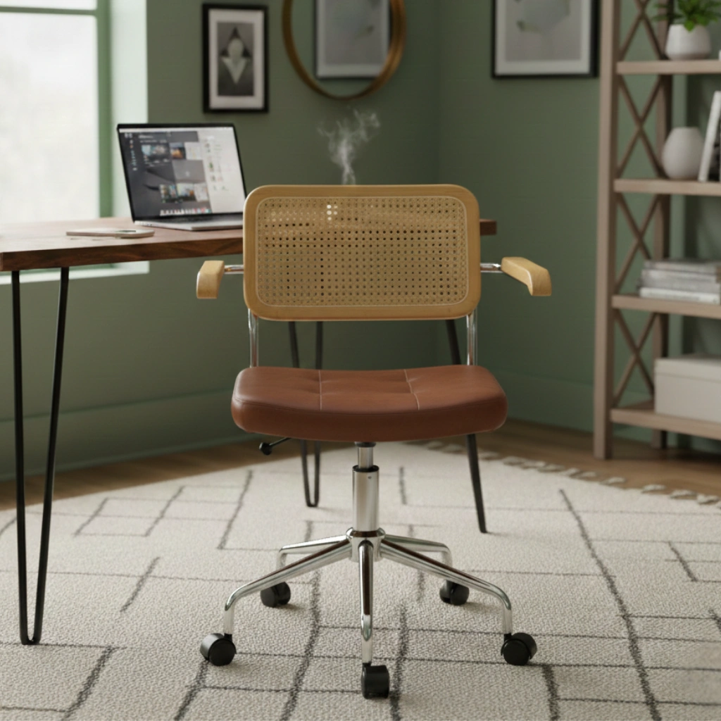Retroinspirerad Skrivbordsstol i Rotting med Brun SitsRetroinspirerad Skrivbordsstol i Rotting med Brun Sits