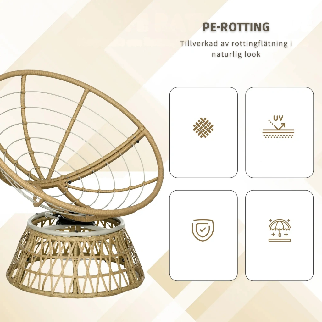 - Stabil pulverlackerad stålram klädd i vädertålig PE-rotting