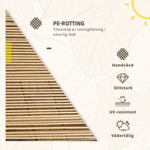 - Tillverkad i vädertålig PE-rotting med stabil stålram