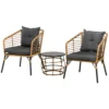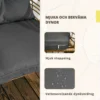 Den stabila konstruktionen är uppbyggd av en robust stålram som ger god hållbarhet. Möblerna är klädda i handflätad PE-rotting som är vädertålig, lättskött och anpassad för utomhusbruk.