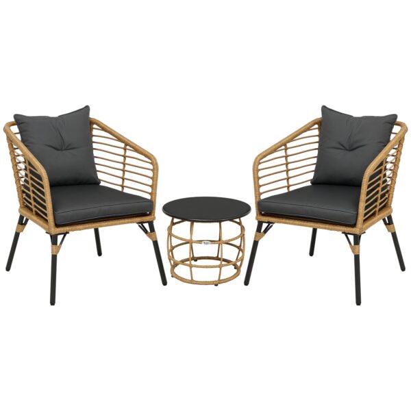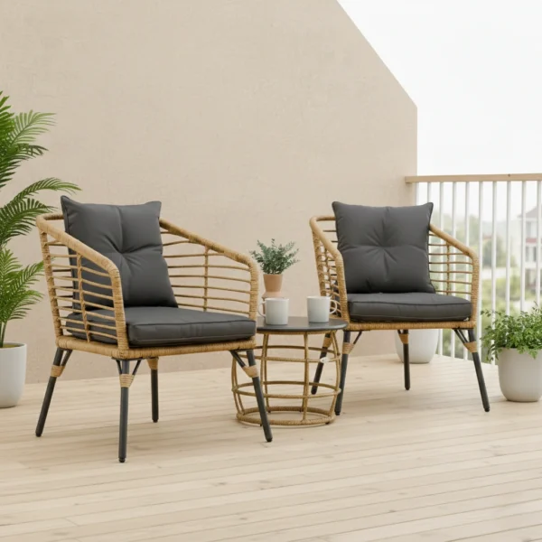 Njut av lugna eftermiddagar utomhus med detta stilrena bistroset. Setet består av två bekväma fåtöljer och ett matchande bord – perfekt för avkoppling, en kopp kaffe eller en stunds samtal med någon du tycker om.