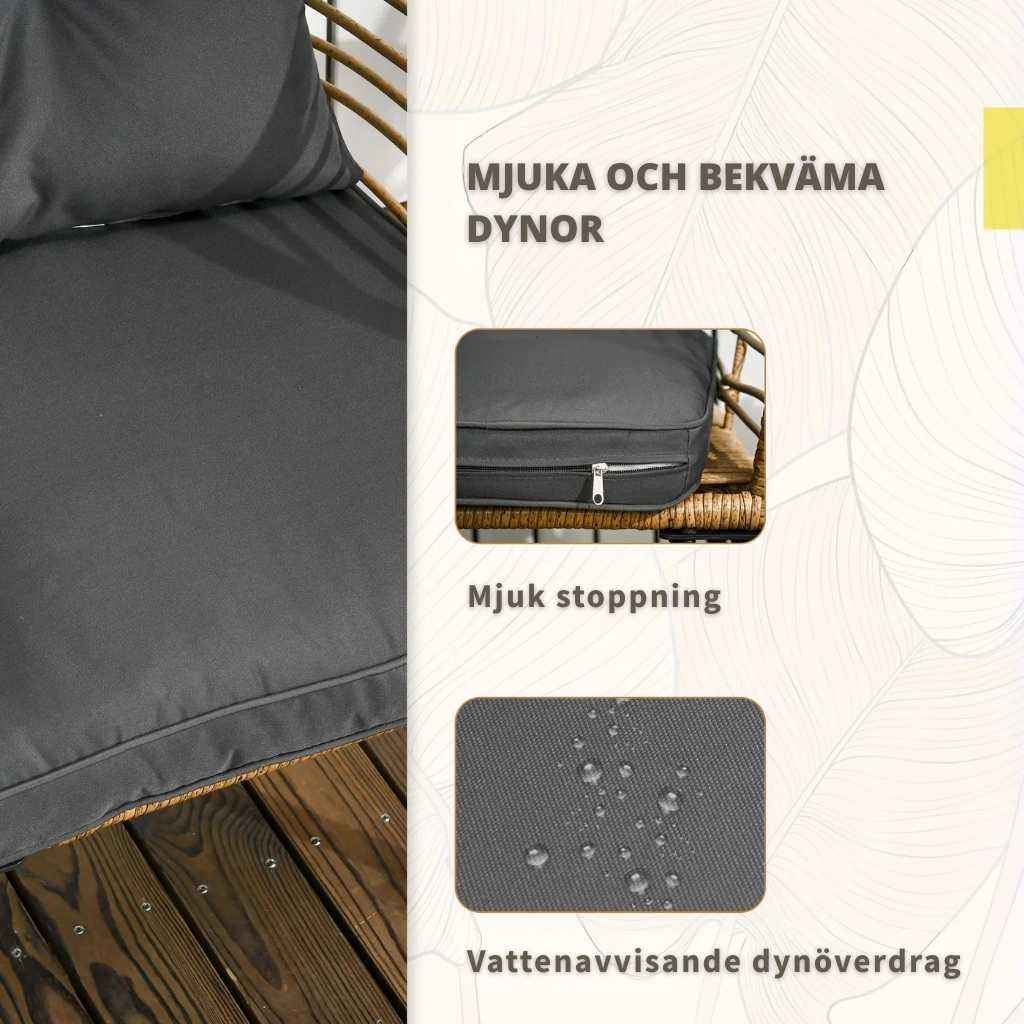 - Tillverkad i vädertålig PE-rotting med stabil stålram